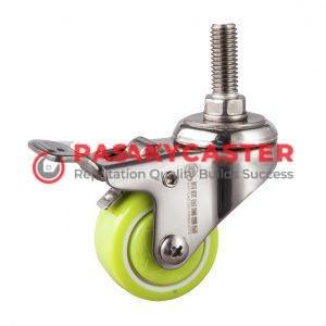 Bánh Xe PU Xanh inox 304 Cọc Ren Xoay Có Khóa Tải Nhẹ 1,5 inch/2 inch