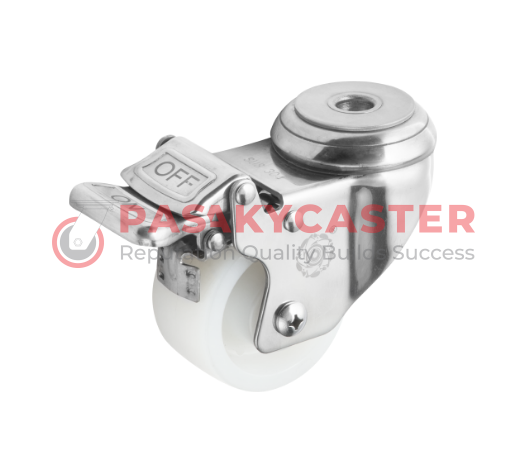 Bánh Xe PA inox Xoay Có Khóa Kim Loại Cọc Lỗ (không ổ trục) /3 inch/4 inch/5 inch